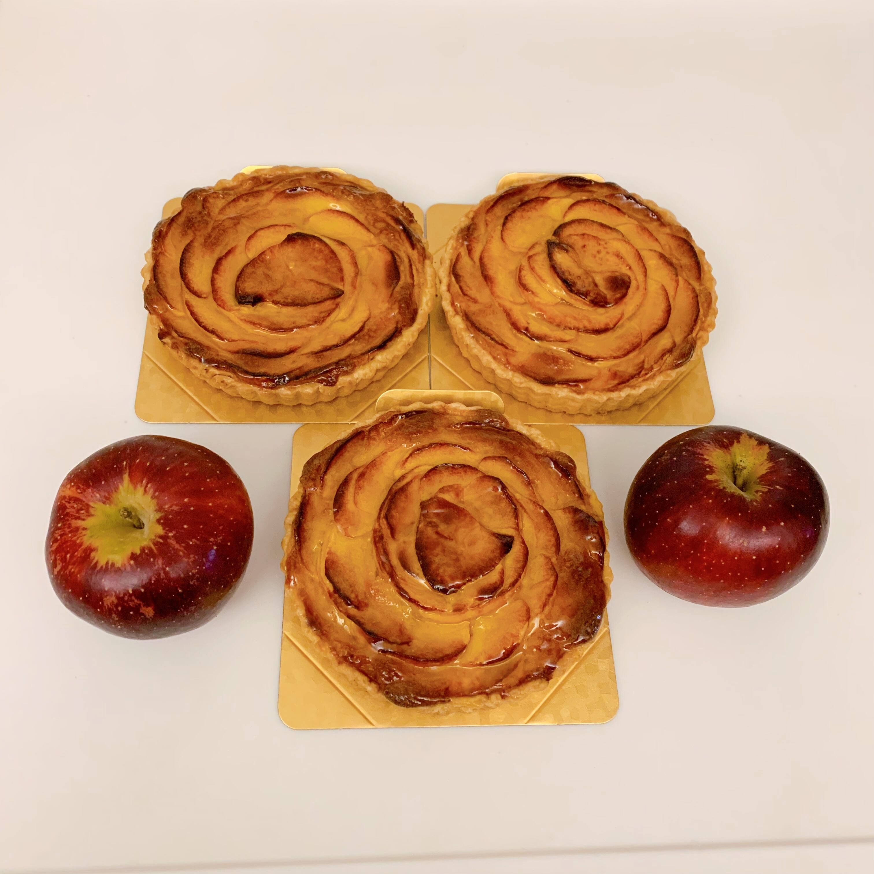 たっぷりのクレーム・ダ・マンド(アーモンドクリーム)の上にりんごをたっぷり飾ってしっとり焼き上げました。